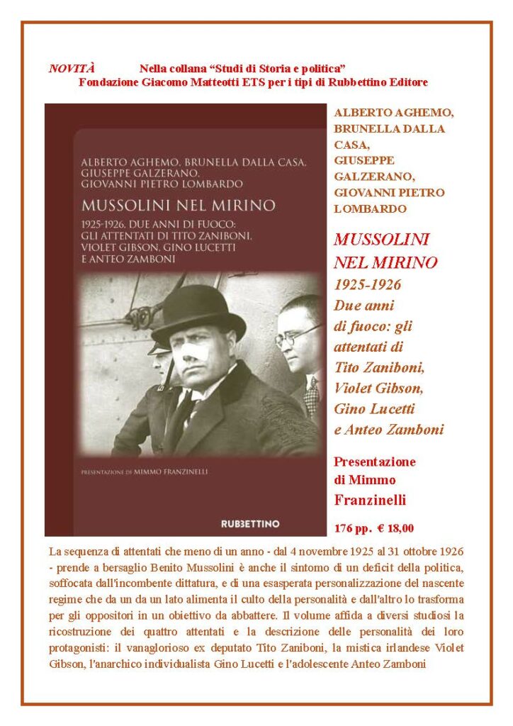 MUSSOLINI NEL MIRINO 1925-1926 Due anni di fuoco: gli attentati di Tito Zaniboni, Violet Gibson, Gino Lucetti e Anteo Zamboni