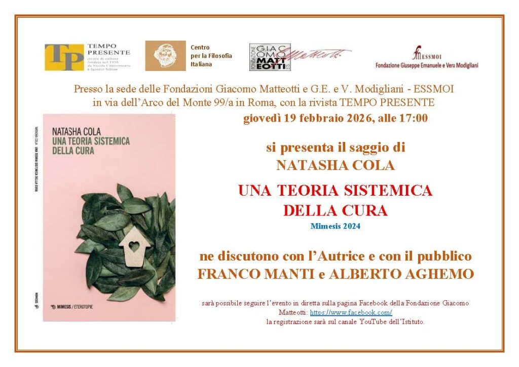 La presentazione è stata congiuntamente organizzata dalle fondazioni Giacomo Matteotti e G.E. e V. Modigliani – ESSMOI insieme al centro per la Filosofia Italiana e alla rivista di cultura TEMPO PRESENTE.