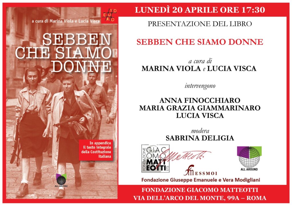 Lunedì 20 aprile alle 17:30, nella sede di Via dell’Arco del Monte 99/a in Roma, presentato il libro SEBBEN CHE SIAMO DONNE, a cura di Marina Viola e Lucia Visca (all around 2026)