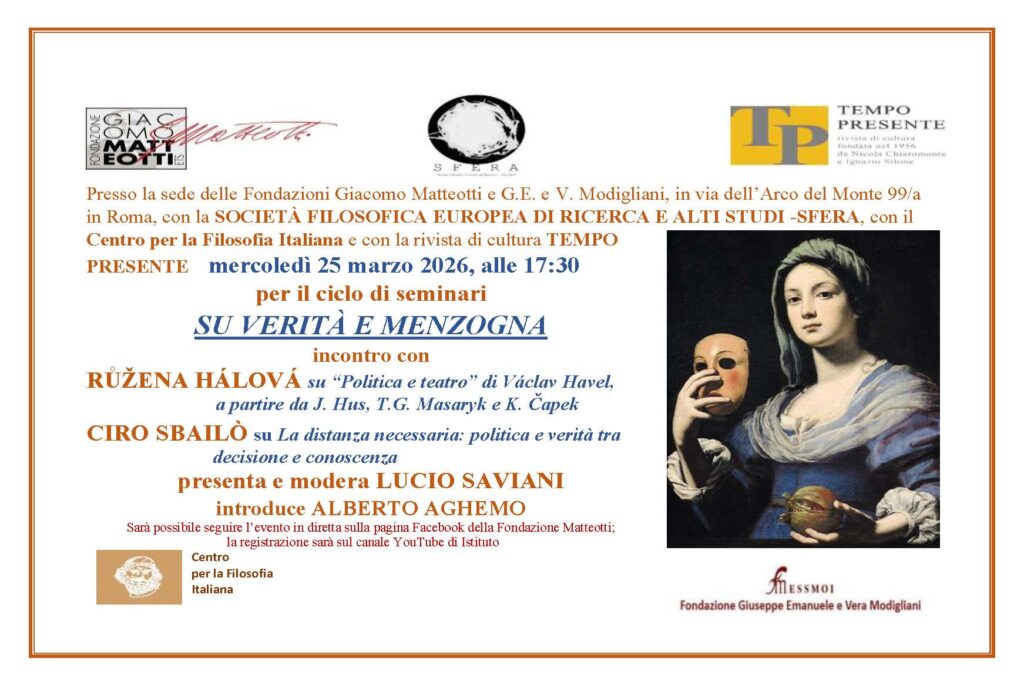 Mercoledì 25 marzo alle 17:30 – per il ciclo di seminari SU VERITÀ E MENZOGNA – sono intervenuti