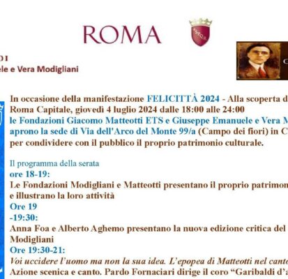 In occasione di FELICITTÀ 2024, le Fondazioni Giacomo Matteotti e Giuseppe Emanuele e Vera Modigliani ESSMOI hanno aperto le porte ai visitatori e presentato il proprio patrimonio culturale
