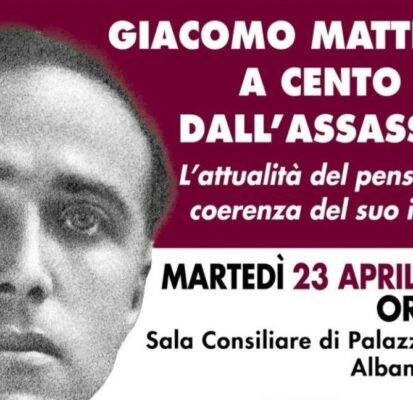 Martedì 23 aprile alle 9:30 ad Albano Laziale, nella sala consiliare di Palazzo Savelli, si è tenuto il convegno “GIACOMO MATTEOTTI A CENTO ANNI DALL’ASSASSINIO l’attualità del pensiero e la coerenza del suo impegno”