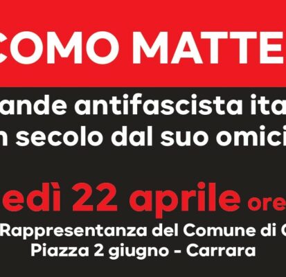 Lunedì 22 aprile a Carrara, alle ore 11:00 presso l’Aula Magna dell’I.I.S. “Zaccagna- Galilei” e alle 16:30 nella Sala di rappresentanza del Comune, si tiene l’incontro GIACOMO MATTEOTTI – UN GRANDE ANTIFASCISTA ITALIANO A UN SECOLO DAL SUO OMICIDIO