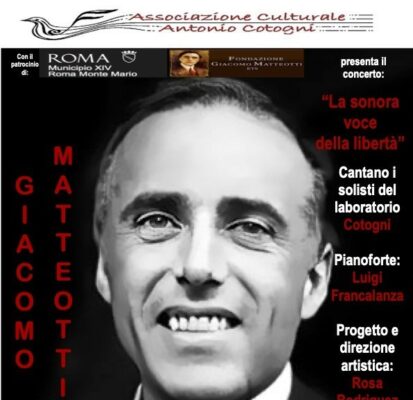 Venerdì 3 maggio a Roma, alle 19:30, presso l’Aula Magna della Facoltà Valdese in via Pietro Cossa 40, si è tenuto il concerto GIACOMO MATTEOTTI, LA SONORA VOCE DELLA LIBERTÀ