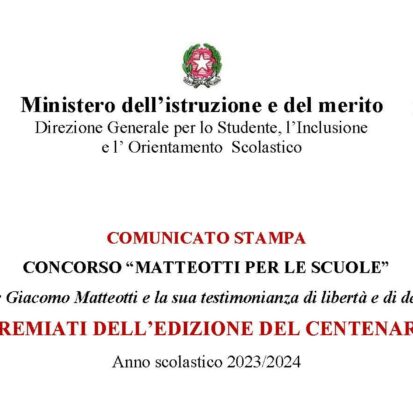 I PREMIATI DELL’EDIZIONE DEL CENTENARIO DEL CONCORSO “MATTEOTTI PER LE SCUOLE – Ricordare Giacomo Matteotti e la sua testimonianza di libertà e di democrazia” per l’anno scolastico 2023/2024