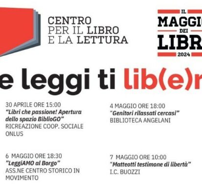 Per il MAGGIO DEI LIBRI 2024 promosso dal Cepell – Centro per il libro e la lettura nell’ambito della manifestazione “Se leggi ti lib(e)ri” martedì 7 maggio dalle 10:00 presso l’I.C. Buozzi di Monterotondo MATTEOTTI TESTIMONE DI LIBERTÀ