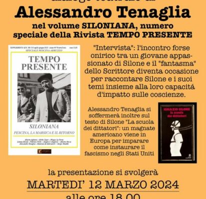 Il 12 marzo 2024 alle 18:00, presso la Libreria Tarantola di Udine, si è parlato di “Tempo Presente” e di Ignazio Silone con Alessandro Tenaglia