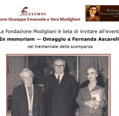 Lunedì 8 Aprile 2024 le 17:00 nella sede di Via dell’Arco del Monte 99/a in Roma, la Fondazione Giuseppe Emanuele e Vera Modigliani – ESSMOI, in collaborazione con la Fondazione Giacomo Matteotti, organizza l’evento IN MEMORIAM – OMAGGIO A FERNANDA ASCARELLI, nel trentennale della scomparsa