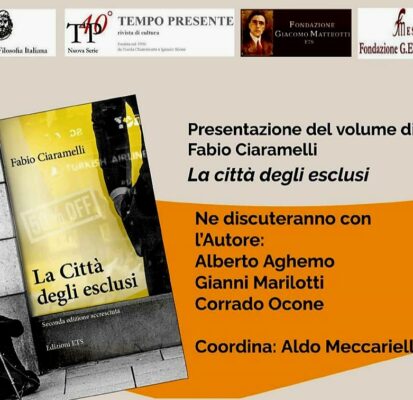 La Fondazione Giacomo Matteotti con il Centro per la Filosofia italiana e Tempo Presente hanno organizzato Venerdì 13 ottobre alle 17:00 in Via dell’Arco del Monte 99/a – Roma la presentazione del volume di Fabio Ciaramelli LA CITTÀ DEGLI ESCLUSI