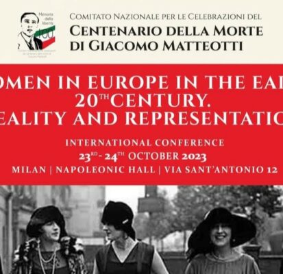 A Milano il 23 e 24 ottobre, a cura del Comitato Nazionale per le celebrazioni della morte di Giacomo Matteotti, si tiene il convegno internazionale “WOMAN IN EUROPE E IN THE EARLY 20TH CENTURY. REALITY AND REPRESENTATION”