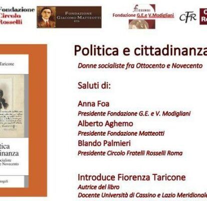 Presentazione del volume “POLITICA E CITTADINANZA. Donne socialiste tra Ottocento e Novecento”, di Fiorenza Taricone, ed. Fondazione Turati – 18 aprile ore 17:00