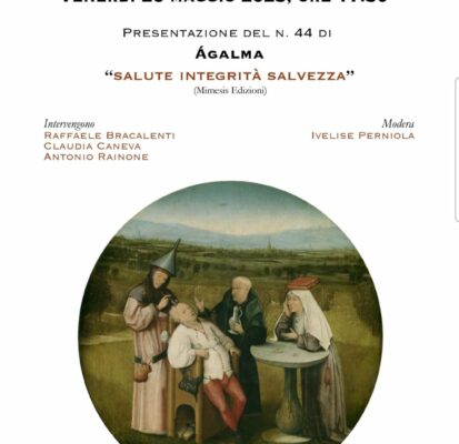 Venerdì 26 maggio 2023, ore 17:30, presentazione del n. 44 di AGALMA – “Salute integrità salvezza” – Via dell’Arco del Monte 99/a Roma