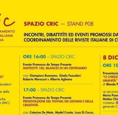 Dal 4 all’8 dicembre 2025 il CRIC – Coordinamento delle riviste italiane di cultura, è alla nuvola dell’Eur. È in fiera con tre eventi anche TEMPO PRESENTE nello SPAZIO CRIC allo stand P08