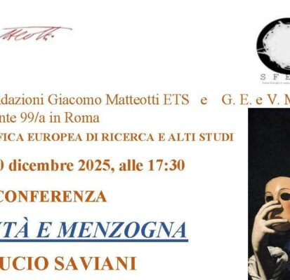 Mercoledì 10 dicembre alle 17:30 conferenza sul tema SU VERITÀ E MENZOGNA