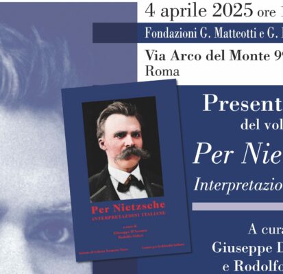 Venerdì 4 Aprile a Roma, in via dell’Arco del Monte 99/a, a cura del Centro per la Filosofia Italiana, delle Fondazioni Giacomo Matteotti e Giuseppe Emanuele e Vera Modigliani – ESSMOI e della rivista TEMPO PRESENTE si è tenuta la presentazione del volume PER NIETZSCHE. INTERPRETAZIONI ITALIANE, a cura di Giuseppe D’Acunto e Rodolfo Sideri