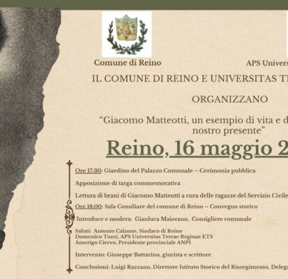 Venerdì 16 maggio 2025 la Fondazione Giacomo Matteotti patrocina il convegno sul tema “GIACOMO MATTEOTTI, UN ESEMPIO DI VITA E DI PENSIERO PER IL NOSTRO PRESENTE” che si tiene presso il Comune di Reino in occasione dell’apposizione di una targa commemorativa