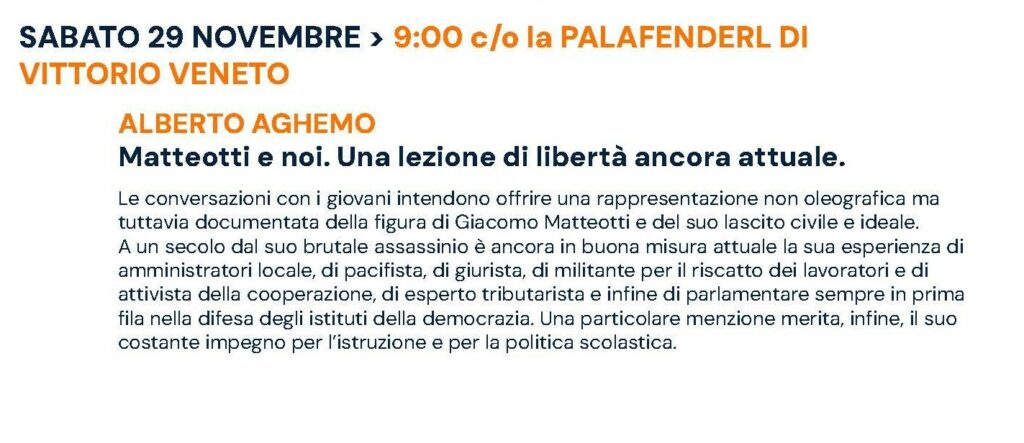 SABATO 29 NOVEMBRE 2025 a VITTORIO VENETO, a conclusione di EDUCHIAMOCI – Giornate per l’educazione 2025, Alberto Aghemo ha condotto l’incontro con le scuole sul tema