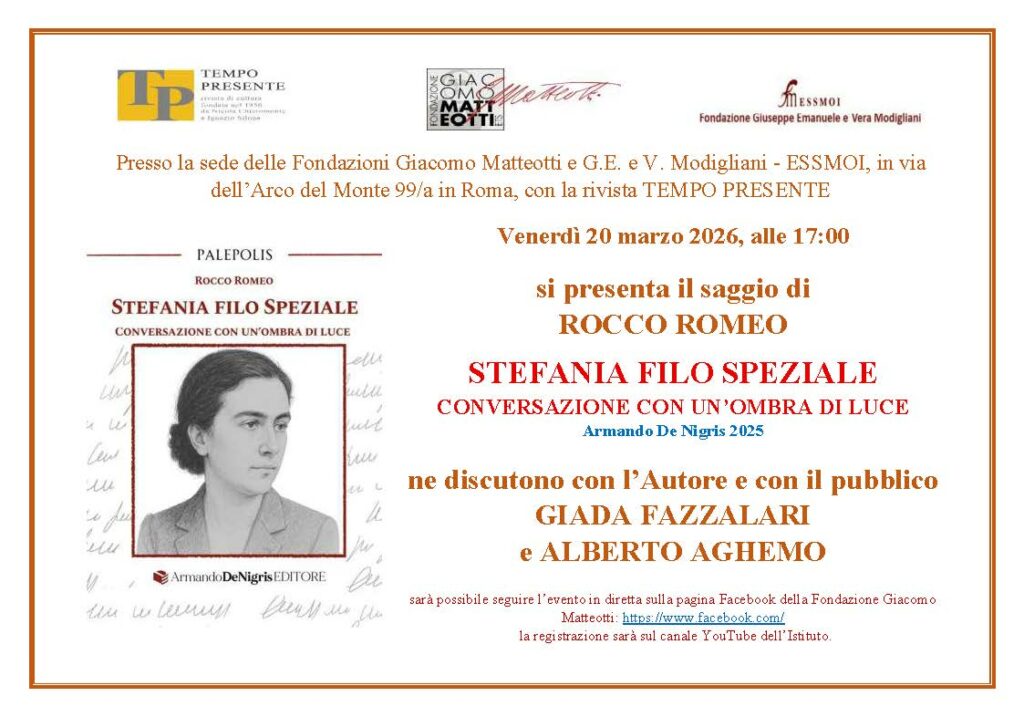 Sarà possibile seguire l’evento in diretta streaming sulla pagina Facebook della Fondazione Matteotti; la registrazione integrale sarà poi sul canale YouTube di Istituto.